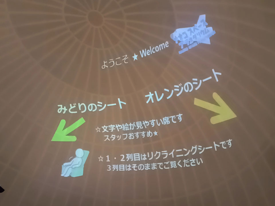 | ■ プラネタリウム室は特にひろくはありませんが、椅子席が三重になっています。内側の二列はリクライニングが可能ですが三列目は固定された椅子席です。ドームの天井には、30年以上も前の松戸市の風景が映し出されています。 ■ 投影の種類は「キッズ用」と「大人用」がありますので、ご自分やご家族の年齢に適した方を選んで楽しんでください。 |