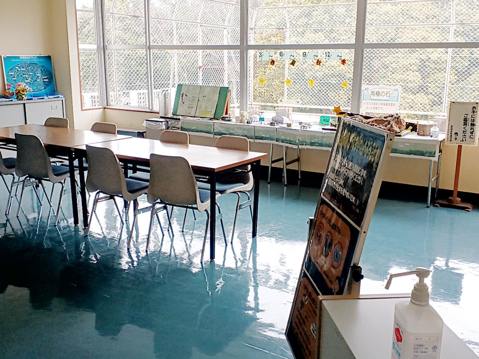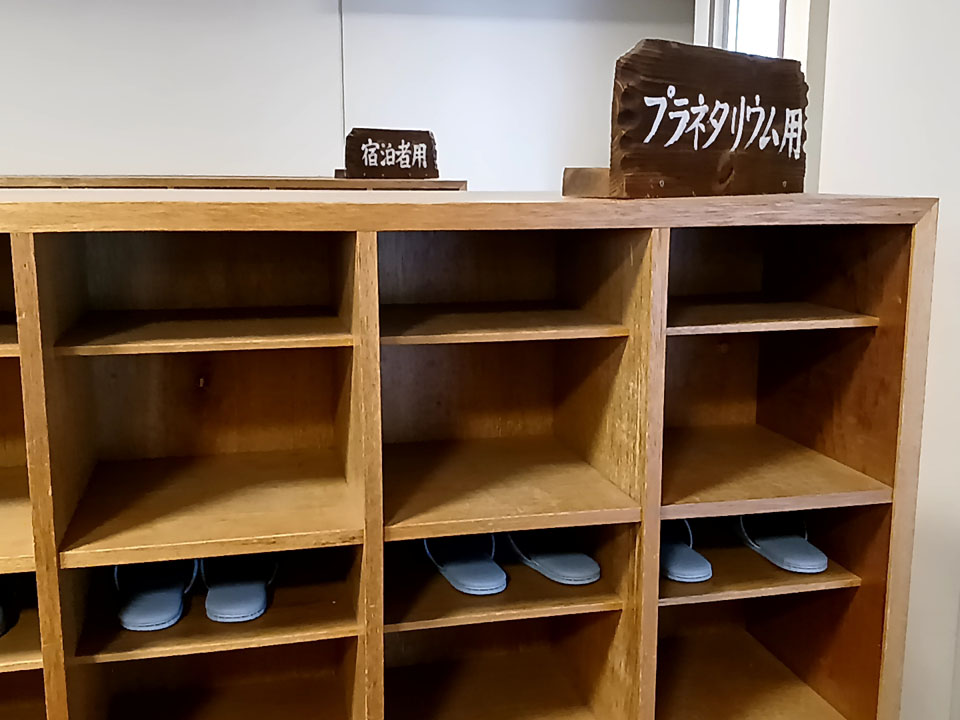 ■ 木々がいっぱいの宿舎の4階にプラネタリウム室は、定員100名なので広々としています。建物自体は歴史を感じますが、清掃が行き届いていて清潔感があります。