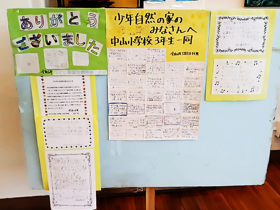 「自然の家」を利用した子どもたちからの感謝の寄せ書き。