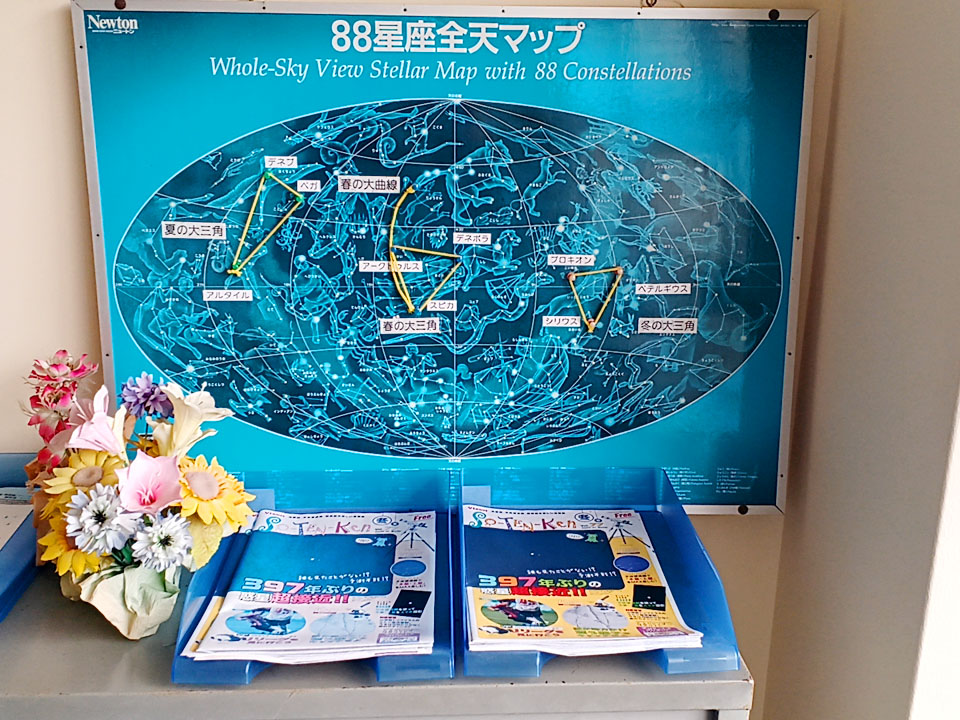 「88星座全天マップ」と無料のパンフレット。