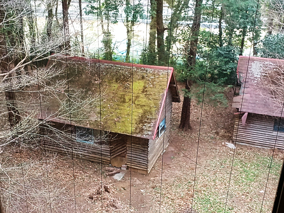 踊り場から見える「自然の家」の作業小屋です。